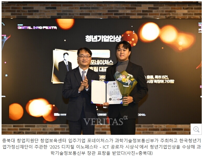 충북대 입주기업 포네이처스 '2025 디지털 이노페스타 - ICT 공로자 시상식' 청년기업인상 수상2025-12-24