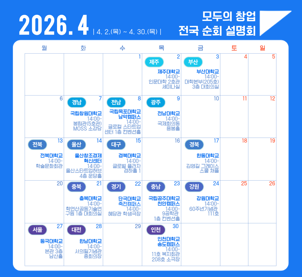 협회 [안내] 「모두의 창업」지역별 순회 설명회 일정 안내